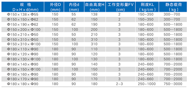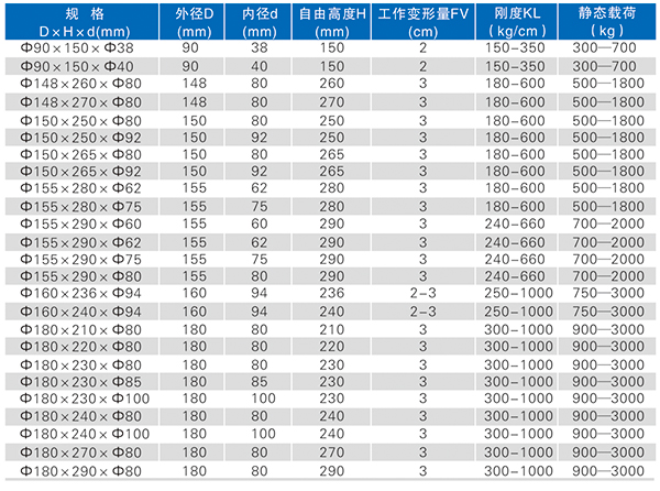 復合彈簧是由金屬螺旋彈簧和橡膠復合為一體的彈性體,集金屬彈簧和橡膠彈簧的優(yōu)點于一體,并克服兩者的缺點。形狀和機械性能穩(wěn)定,能承受載荷和大變形量。隔振降噪效果好,具有工作平穩(wěn),共振區(qū)時間短等優(yōu)點,尤其適用于礦山、冶金、煤炭等行業(yè)的大型振動設備或大型減震設備。